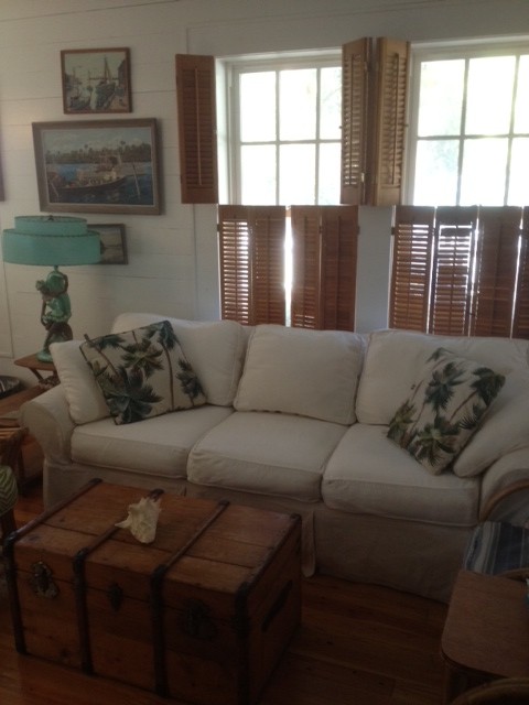 Of course, while I was on Tybee, I couldn’t resist doing a little fluffing at The Breeze Inn. I found a queen-size sleeper sofa on Craigslist that seemed like the perfect addition to our living room, so I swapped the old sofa with Mermaid Diane, and got the new sofa installed. I also switched out the queen-size bed in the master bedroom for a king-size that I’d found at an estate sale in Atlanta. As soon as I have all the new linens gussied up for the room, I’ll show you pix of that. But in the meantime, I’m hoping our guests will love the new, bigger bed as much as I do. PS, if you’re thinking of booking a stay at the Breeze, you might want to check our calendar–we’re already starting to fill up for spring and summer. Hey–maybe I better book our next stay!