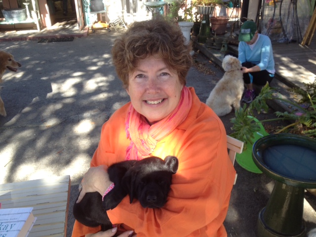 My suitcase was barely unpacked from the Florida trip before I headed down to Tybee Island and Seaside Sisters for a fun fund-raiser put together by my friends at Mermaid Cottages for an organization that trains and provides assistance dogs for servicemen and women. Here I am pictured with six-week-old Buddy, a black lab puppy who is in training to become a service dog. Buddy was so chill I really wanted to sneak him home in my suitcase.Wouldn’t Wyatt and Weezie have loved having a new playmate?