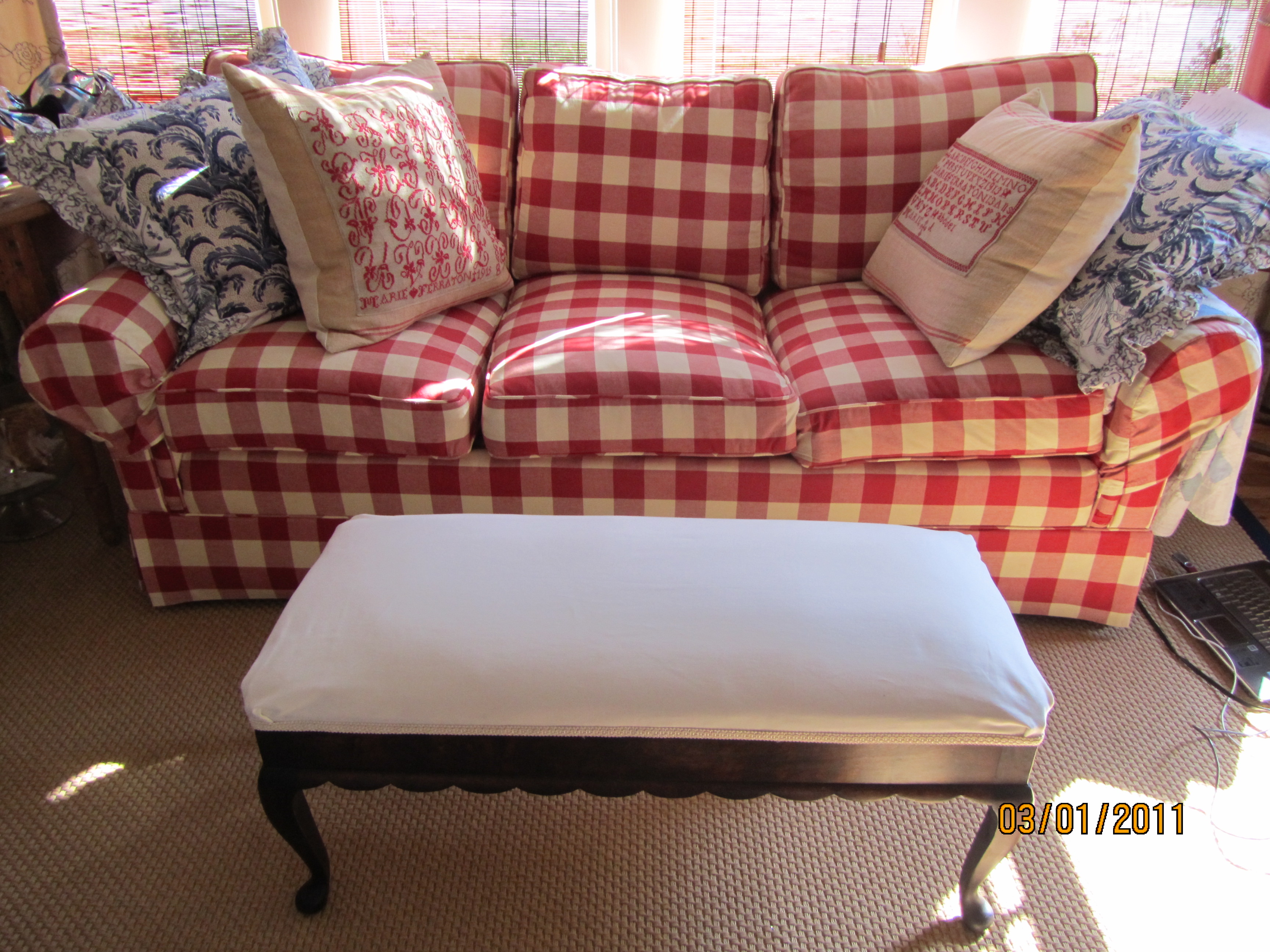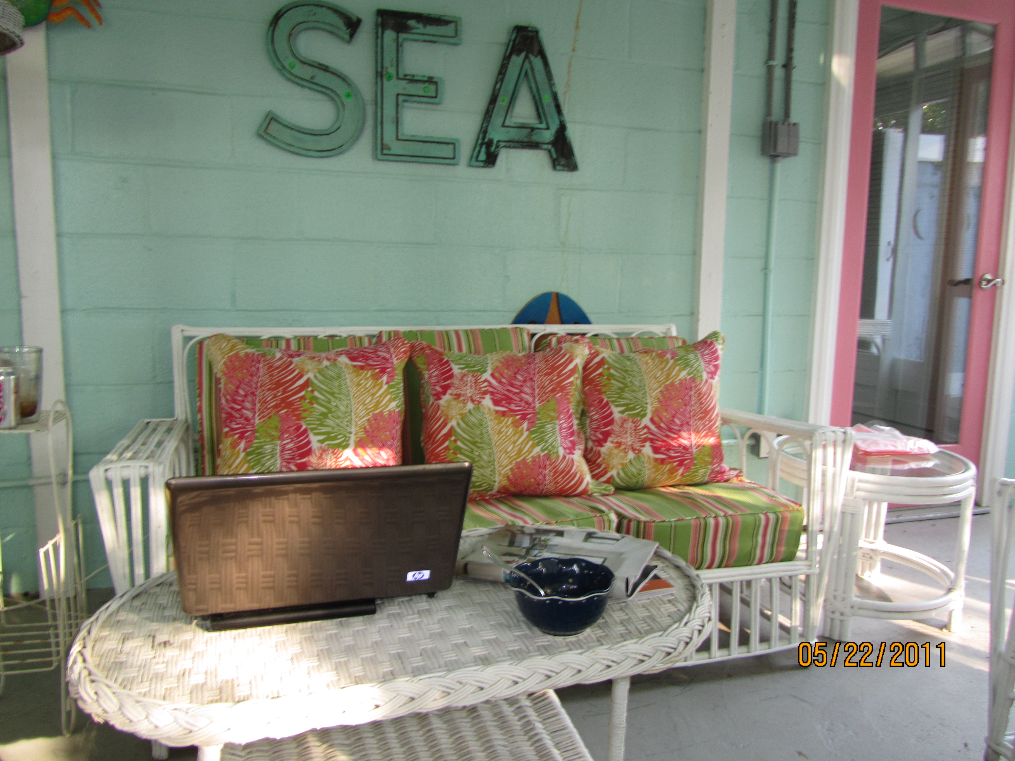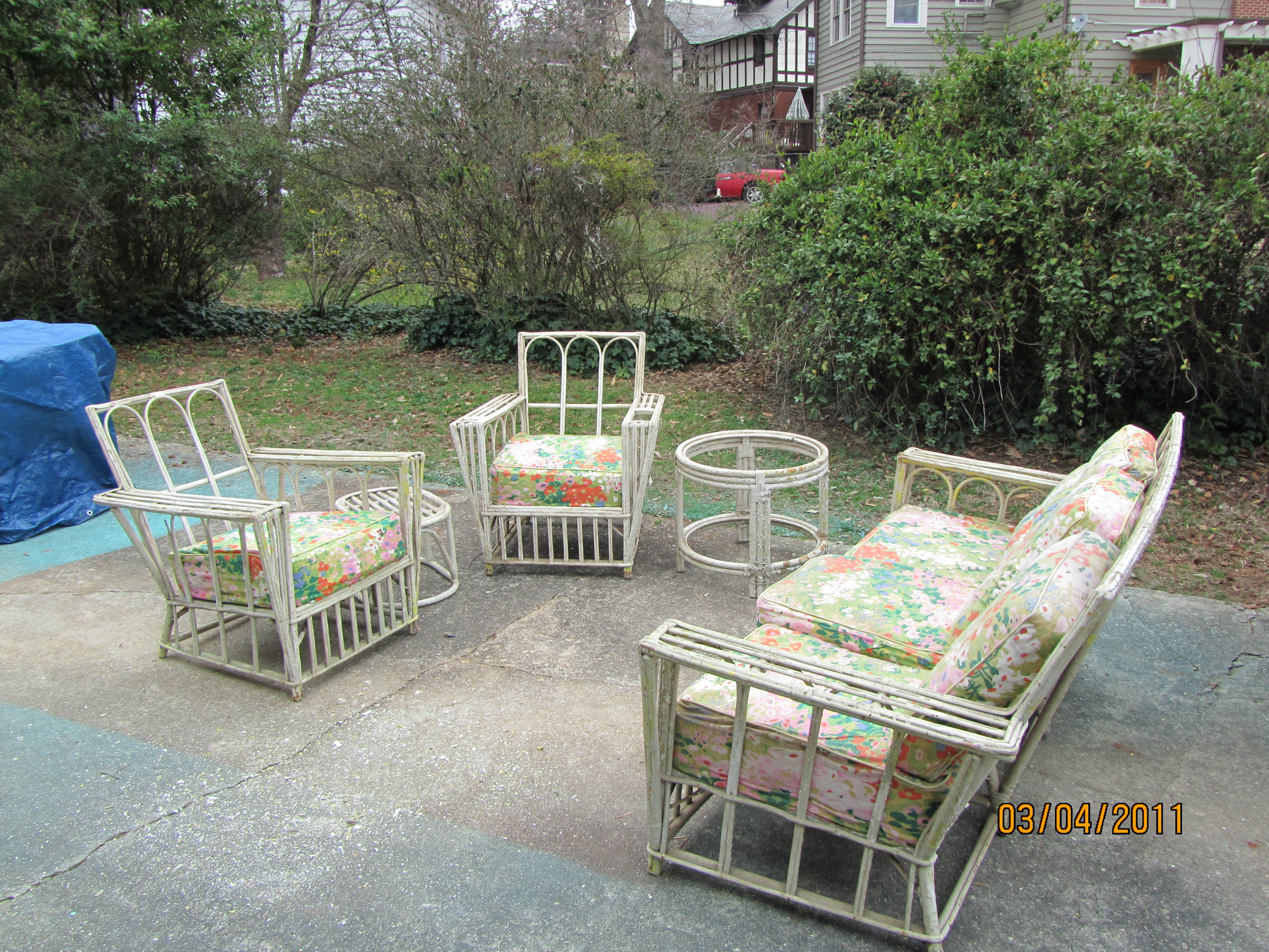 Here's that old split-reed furniture, repainted and re-covered.