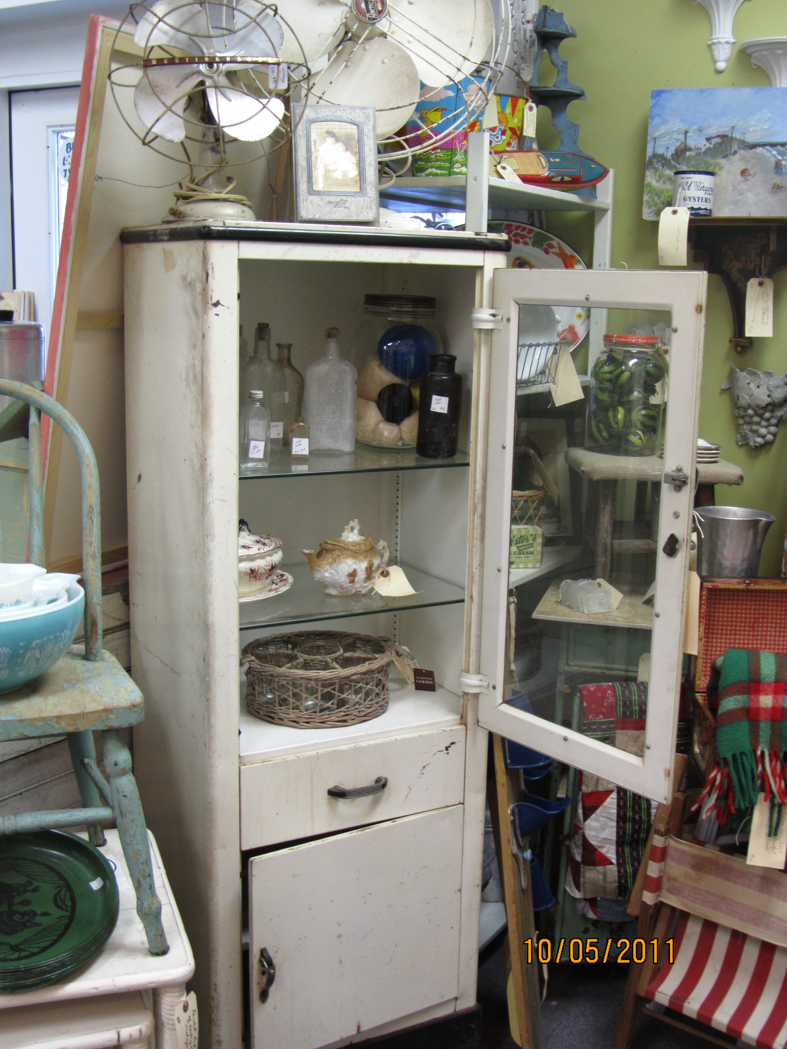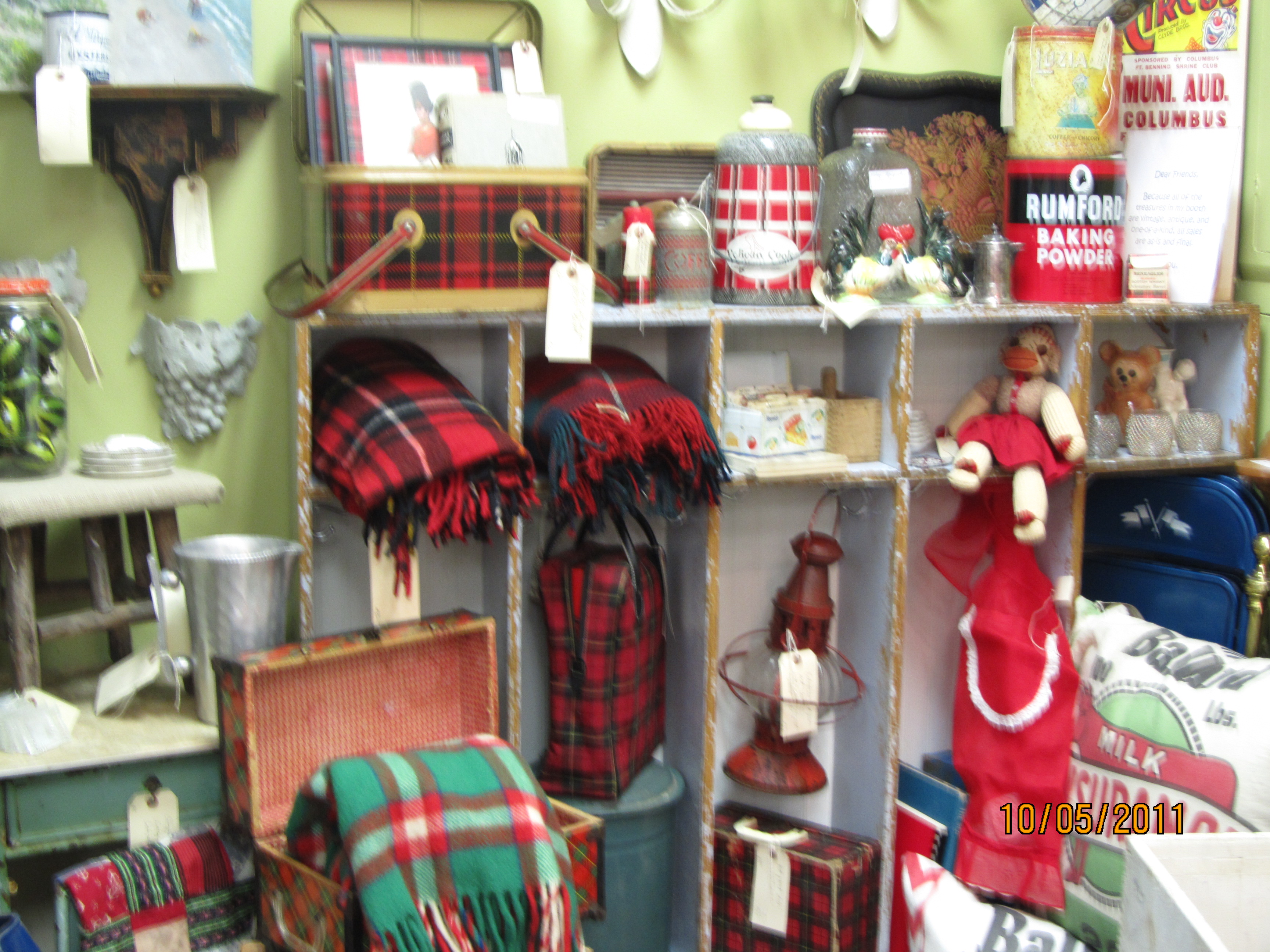 October was an excellent month for junking. At my friend Clay’s moving sale, I scored a great vintage metal dental cabinet, and also a bunch of great plaid blankets, picnic baskets and thermoses which made a great display in my booth.
