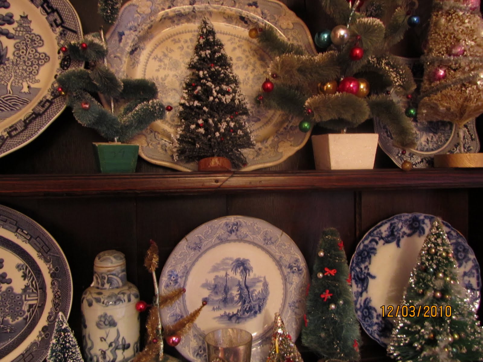 Vintage brush trees sprout among the transferware