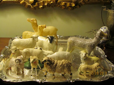 This year, the lambs, most of which were probably orphaned from old nativity sets, decided to herd up with the plastic reindeer on a silver tray on top of the mahogany chest by the sofa. But other years, they’ve paraded across the mantle. I’m hoping the lambs won’t ridicule the reindeer for their missing antlers, or for being so woefully out of scale, compared to the sheep.
