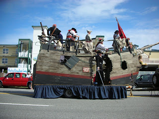 We wandered around the Pirate’s Fest thieves market for a while, buying t-shirts that said things like SURRENDER THE BOOTY. Then we strolled over to the outdoor stage, where a great Zydeco band played, followed by the Atlanta Rhythm Section. After we’d rocked out for a while, we went over to Doc’s Bar on Tybrisa. If you read SAVANNAH BREEZE you’ll remember Doc’s as the place where Harry Sorrentino liked to hang out. Doc’s had a great band too, and my friend Jacky joined us, and we danced and laughed some more. Saturday we watched the Pirate Parade, complete with boats and lawn-mowers decked out as floats, Shriners on motorcycles, and, of course, lots of wannabe buccaneers kickin’ it Johnny Depp style, complete with eyeliner and dreadlocks.