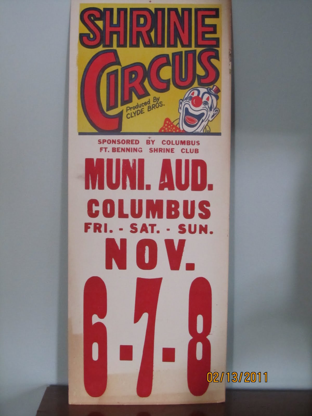 The coach must have run the concession stand at his ballpark, because he’d left behind a huge stash of old waxed cardboard soft drink cups, and popcorn containers that can become a megaphone when the popcorn’s gone. And he was a Shriner too, because there was also a stack of vintage circus posters.