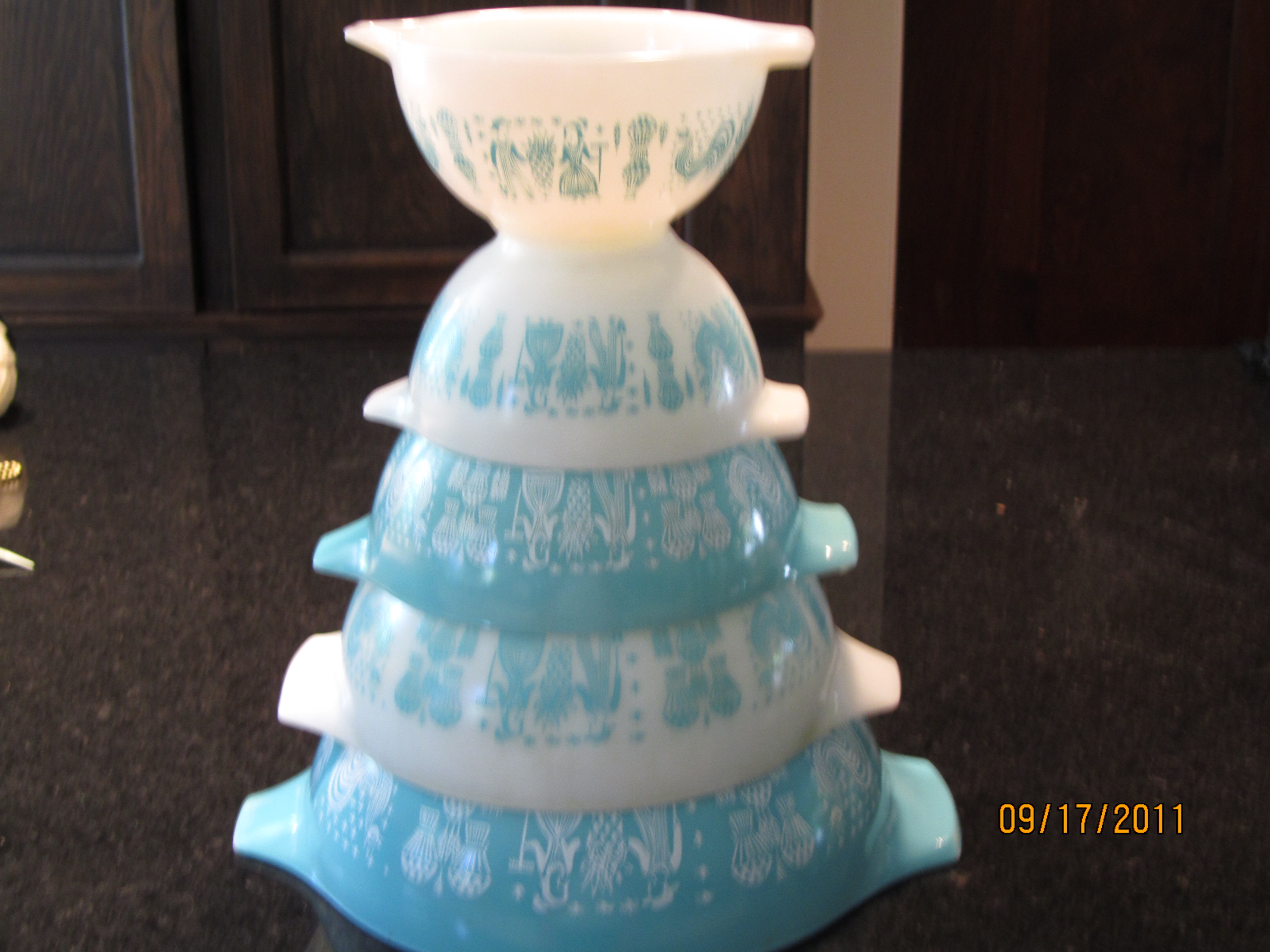 After we paid and went on to another sale–at a ritzy condo in Buckhead where you had to be escorted in and out of the locked building–I realized I’d left my horse trough behind. Back we went, and fortunately, it was still there. All in all, a fabulous fall day of junking. Made better when I did a little research and found that the Pyrex nesting bowls book for between $50-$75. Yay, me!