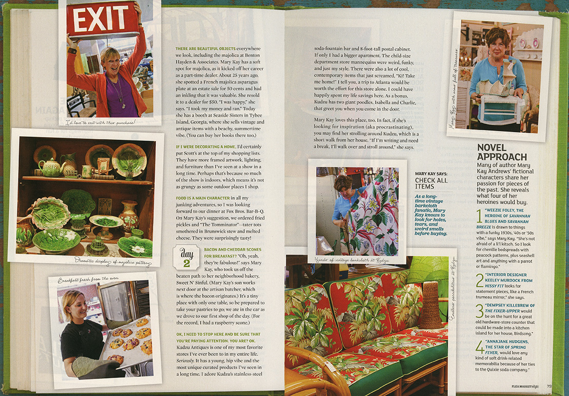 Waaaay back in March I was thrilled to be invited to go on a little Atlanta junk jaunt with flea market rock star Ki Nassauer, the editor and magic-maker behind Flea Market Style Magazine. Ki flew in from L.A. where she lives, her friend flew in from Minnesota to act as her assistant, and we hooked up with an Atlanta-based photographer. What followed was 48 hours of hard-core, full-on extreme junking. Did I love it? You betcha! And here’s the brand-new magazine, with a great ten-page feature on our odyssey.
