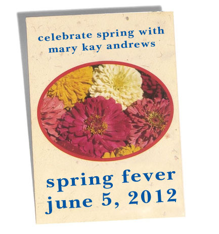 To make sure you get your copy of SPRING FEVER in time for your summer vacation–or just to read while lounging around the neighborhood pool, I’d urge you to pre-order a copy from your favorite bookseller.And here’s the fun part….if you send us proof of your pre-order, we’ll send you a gift–a free packet of perky zinnia seeds specially branded with the SPRING FEVER book cover graphics to remind you that spring fever is catching. Sow the seeds now and enjoy fresh flowers just as SPRING FEVER pops up everywhere in June.