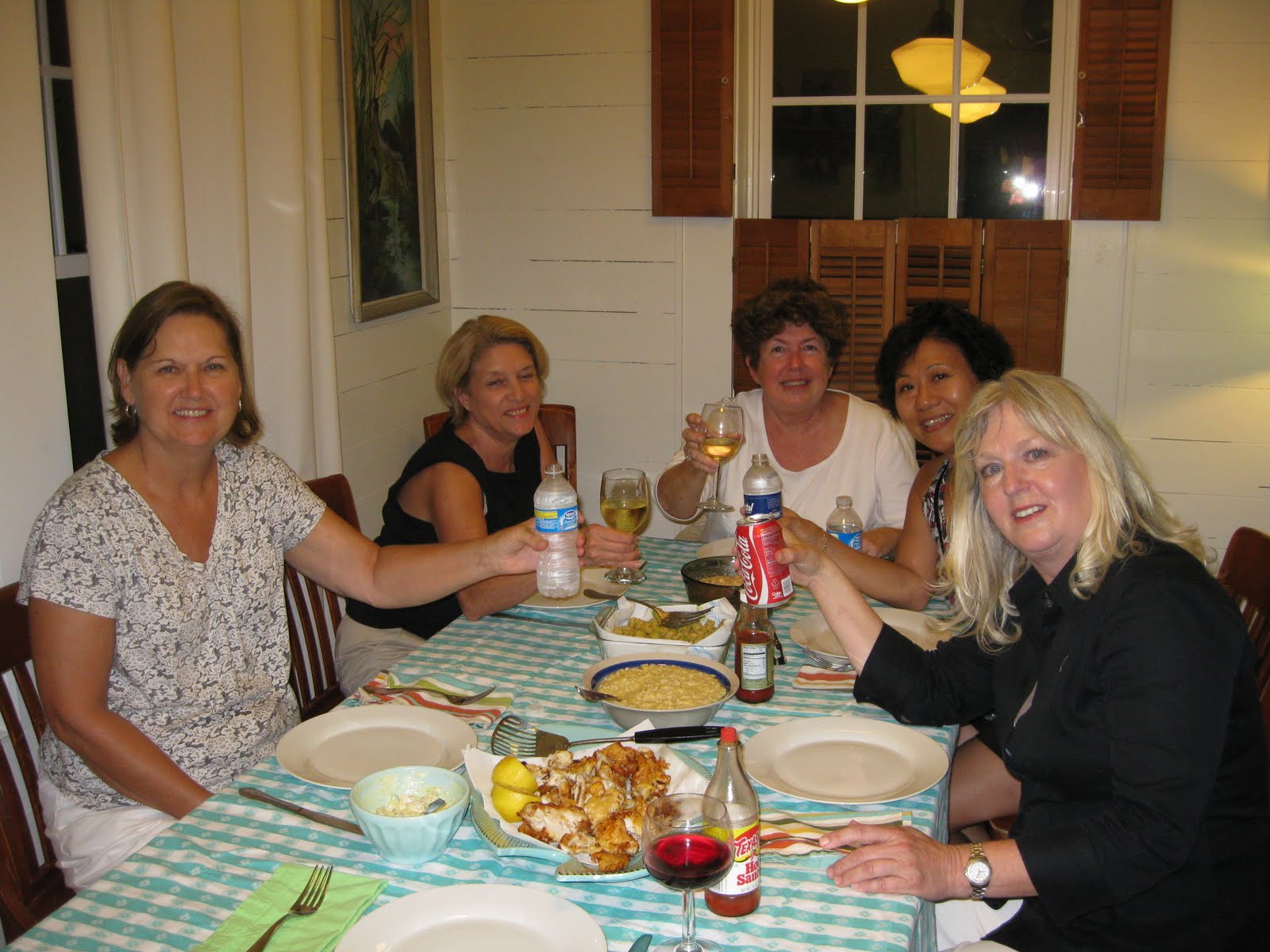 Sunday morning, we prevailed on Pam to fix us homemade biscuits and sausage before we walked down to the beach for an hour or two. We had such a fun time we’re already plotting our next getaway. And Mr. Mary Kay, who’d originally planned to vacate the premises when the girls arrived, will definitely be part of the proceedings again–because who else is going to provide us with seafood? Or build a garage? Or help us figure out the remote control. Ya see, it really is good to have man around the cottage.