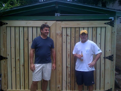So sorry for the interruption in bloggosity. What with finishing revisions for TFB (the friggin’ book), construction projects at The Breeze Inn, and a LOT of company, I sorta got sidetracked. But no worries. I’m back, and ready to “share”–as they say in school these days. First off, here’s a look at the construction projects completed by Mr. Mary Kay and good friend Joel, who came in from Birmingham just to tackle the difficult, sweaty stuff.