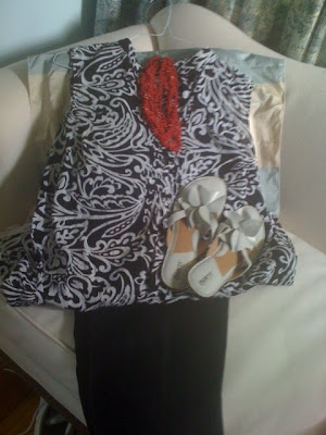 Sigh. And she wrested my favorite faded black yoga pants away from me and took them to her house–just in case I got any ideas about fishing them out of the trash! I tell you, the kid is relentless. She put accessories with outfits, and even photographed them with my cell phone just in case I have any accessorization dilemmas.